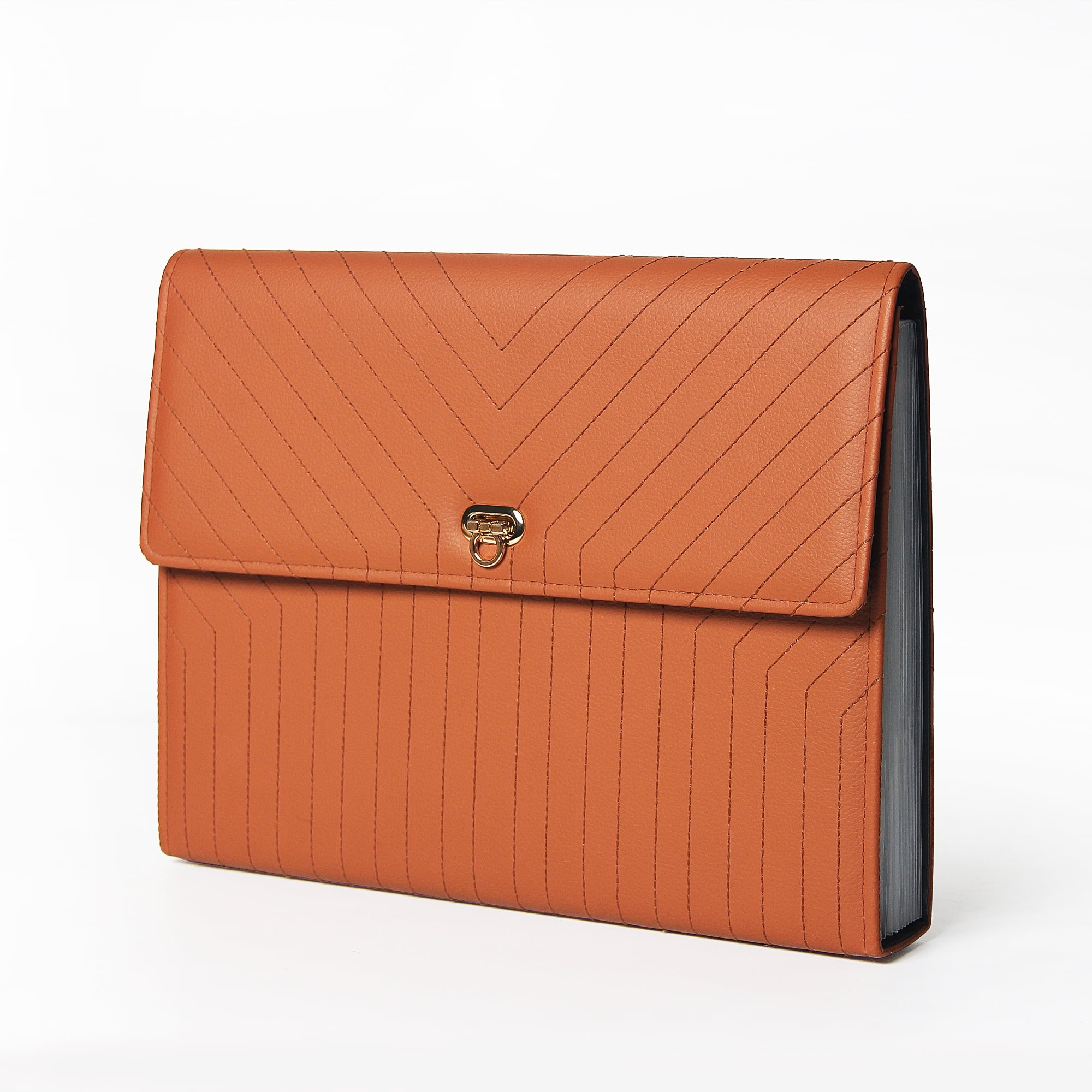 Pen Gear 13 Pocket Pu Quilted Expanding File Brown Walmart Com